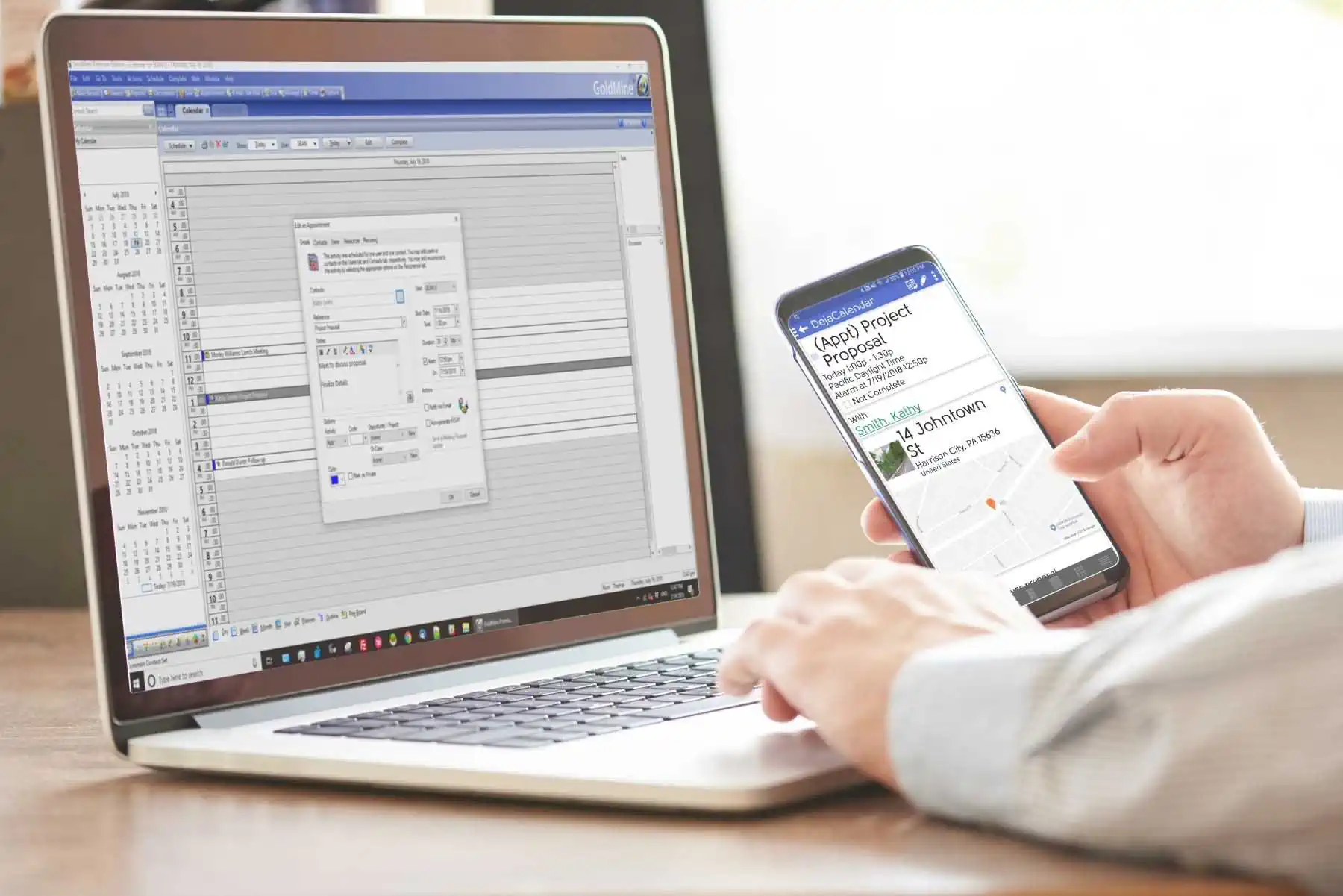 We feature DejaOffice CRM App for iPhone and Android because it is a custom "landing pad" for your GoldMine data. In DejaOffice, you can view Contacts with Notes and Histories schedule Activities, complete Activities, and create History.