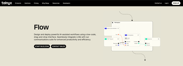 Telnyx Flow is a no-code, drag-and-drop builder for designing custom AI chatbots and automated communication flows. Built on Telnyx’s real-time communications platform, Flow helps businesses create smart, scalable bots for messaging, voice, and more—without needing to write code.