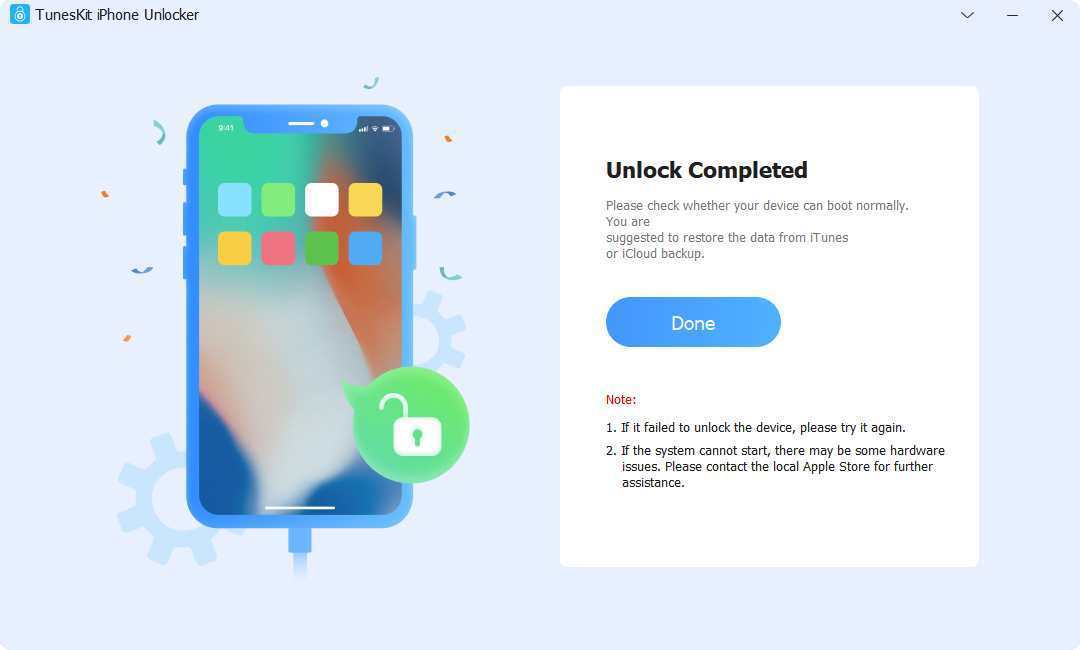 TunesKit iPhone Unlocker is an effective toolkit that can help iOS users bypass Security Lockout screen without passcode. It works well to remove any type of screen locks, including 4-digit/6-digit passcode, alphanumeric passcode, Face ID, and Touch ID. By using this professional iPhone unlocker, you don’t have to provide any credential information and the whole process is easy-to-operate.