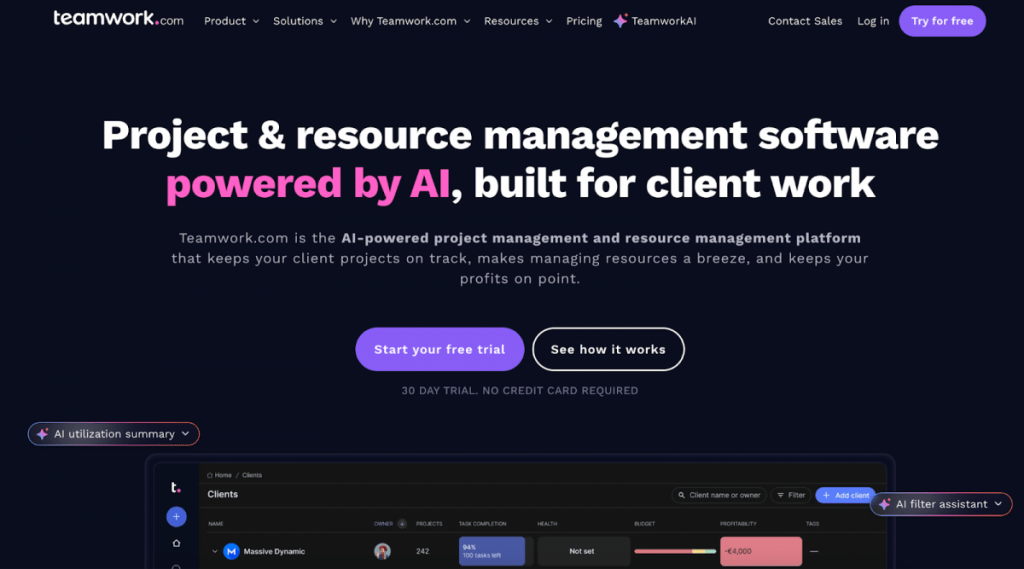 Teamwork is designed for client service teams that juggle multiple projects and need to track time, budgets, and progress. It’s often used by marketing agencies and consulting firms.