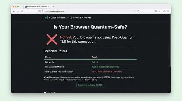 Project 11’s free PQ-TLS browser checker parses each endpoint’s TLS ClientHello and flags whether it advertises hybrid suites such as X25519-MLKEM768 or pure MLKEM variants, giving you an instant map of which workstations can join early pilots and which need patching.
