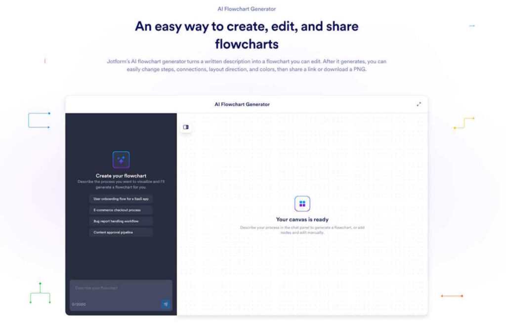 | Jotform AI Flowchart Generator | Business operations, most use cases | Structured workflow generation |