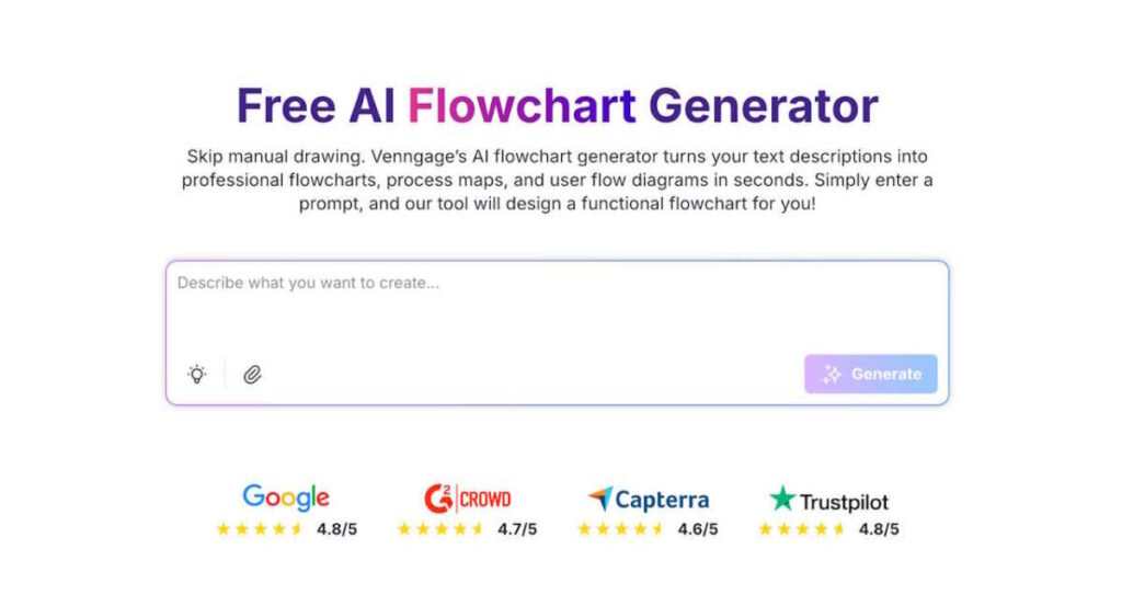 | Venngage AI Flowchart Generator | Client-facing presentations | Brand customization tools |