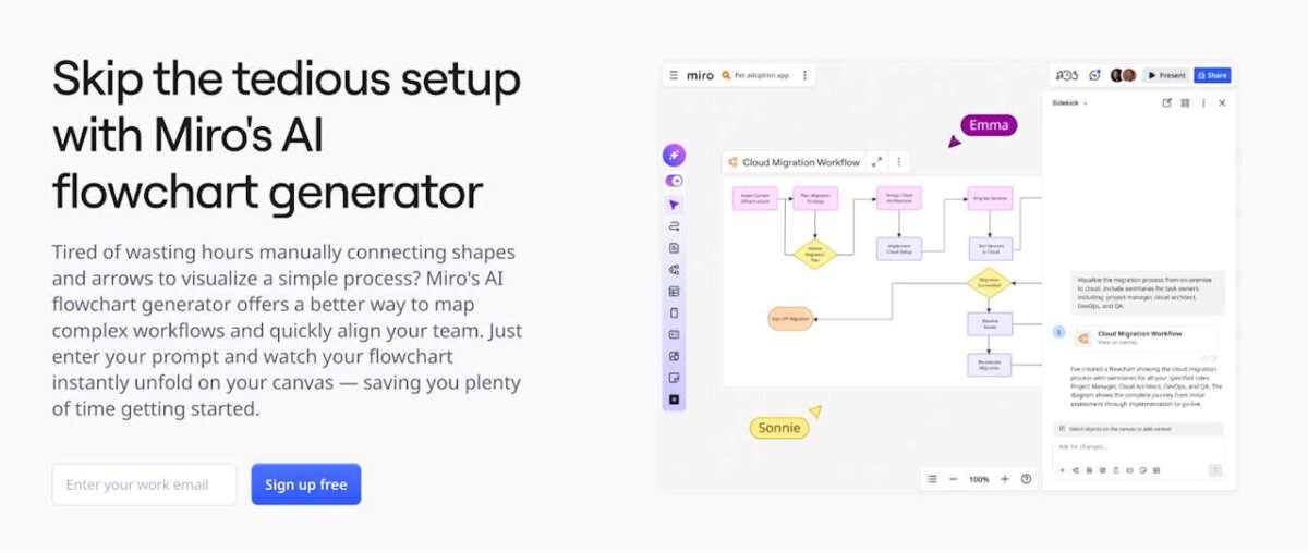 | Miro AI Flowchart Generator | Agile teams | Collaborative infinite canvas |