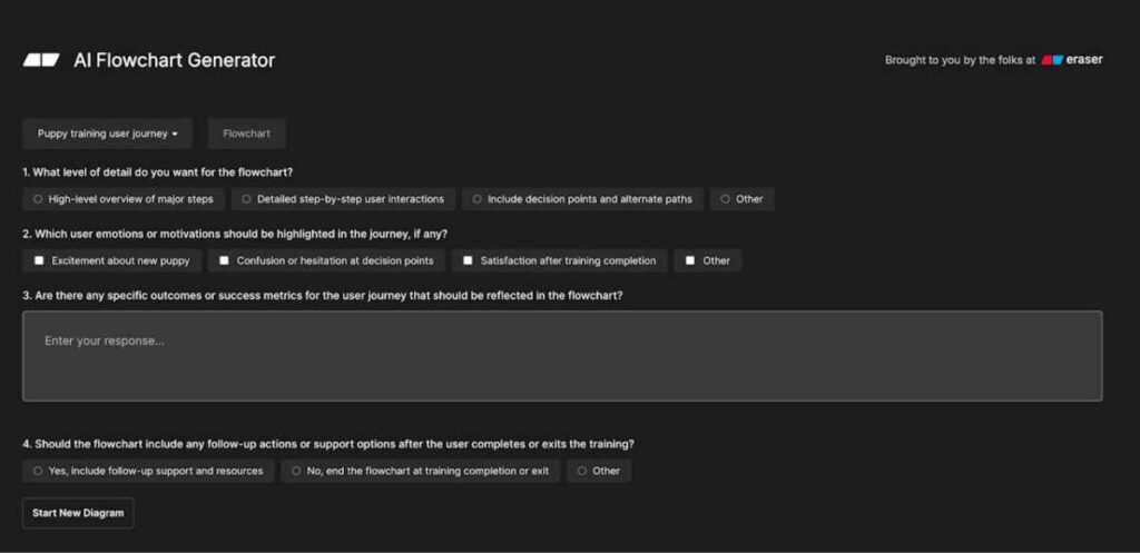 | Eraser.io AI Flowchart Generator | Engineering workflows | Developer-focused logic diagrams |