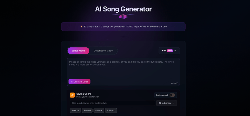 - Overview: Aisong.io is a powerful AI Song Generator that enables users to produce original music from simple text descriptions. Whether you want to generate a 30-minute lo-fi track to help you focus during deep work sessions, or you need a catchy jingle for your side business, this platform delivers instant, high-quality results.